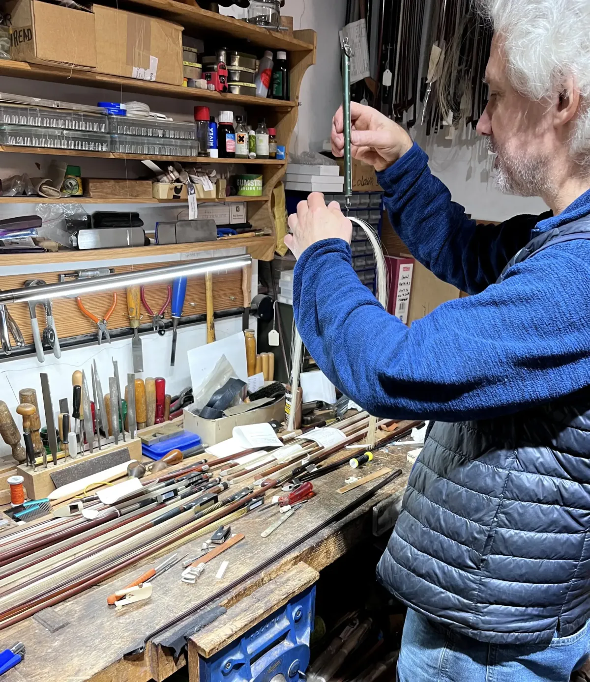 If needed, we can lend you a bow while yours is being rehaired or repaired. If you are unable to visit the shop we offer a postal service for bow rehairs and bow repairs.